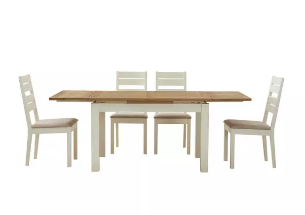 Seconique ludlow dining set white and oak dining table and 4 slatted highback chairs 96. Harveys use cookies to store information on your.